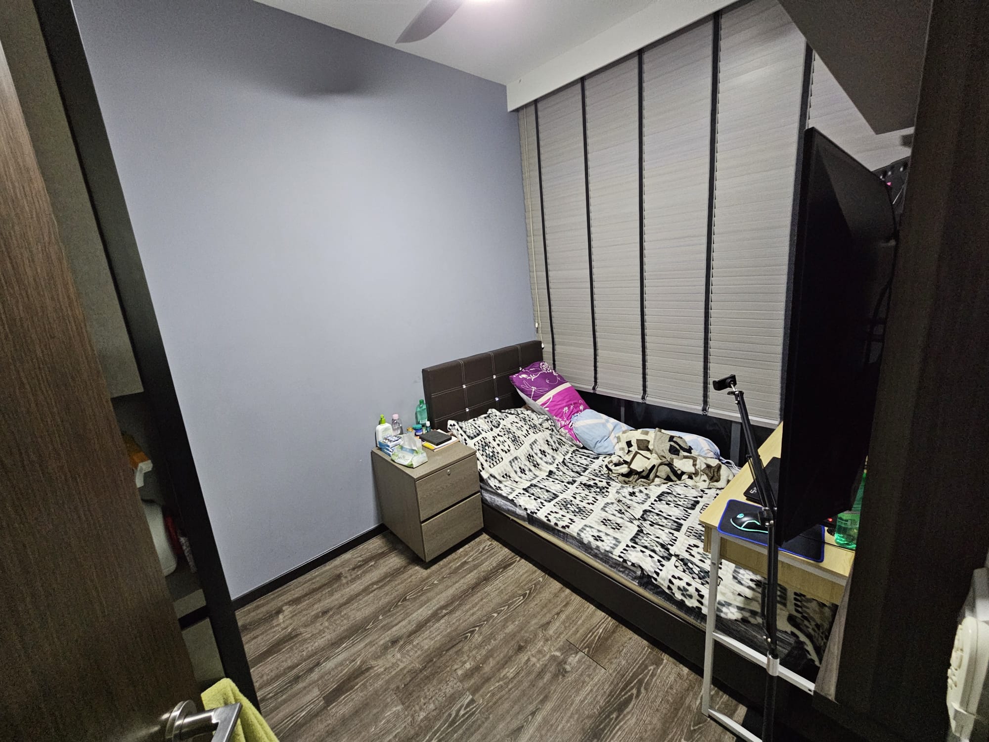 AIR-CONDITIONED COMMON ROOM FULLY FURNISHED WITH BED & CABINETS FOR SOLO OCCUPANCY